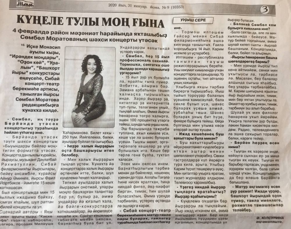 Бөрйән районының “Таң” гәзите 31.01.2020й. №9