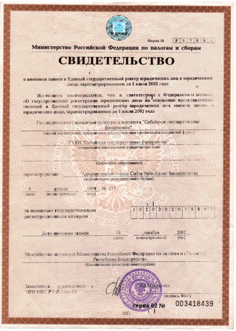 Свидетельство о регистрации